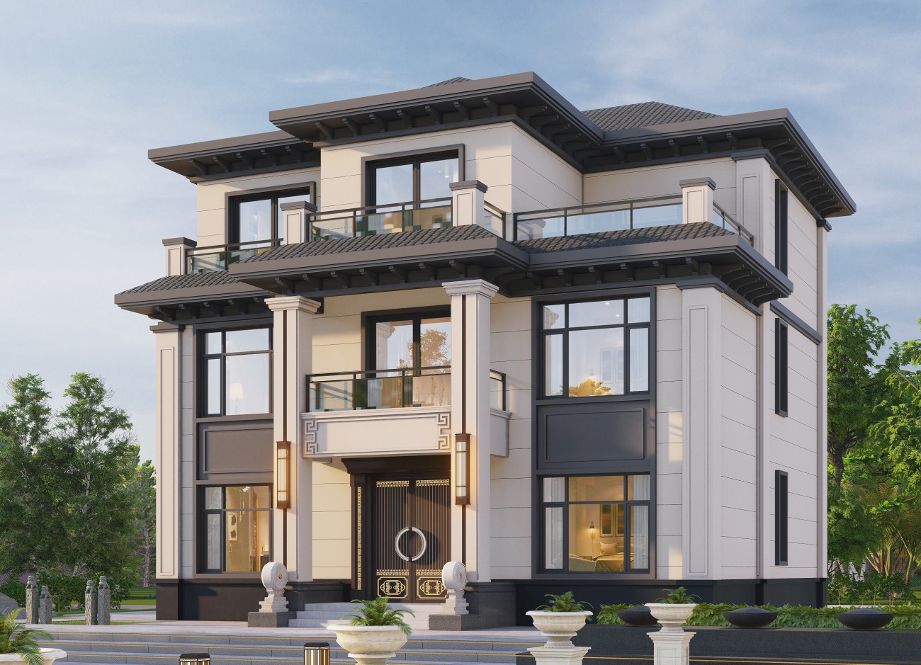 临高17 三层新中式(10x12米)-【易设计】