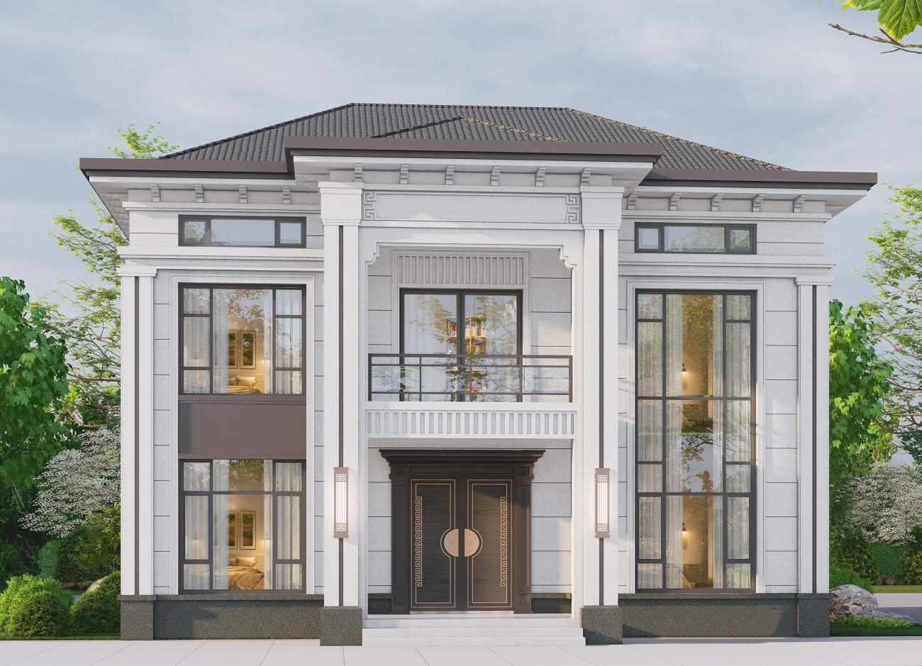 临高12 新中式两层半(12.8x13.06米)-【易设计】